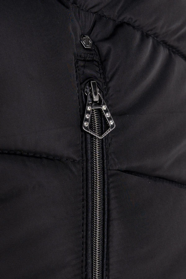 - Metal badge and Swarovski crystal-embellished zips for a luxe touch