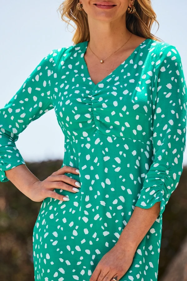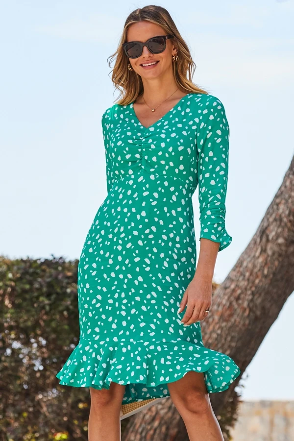 - Fit & flare, ruched front – it doesn’t get more flattering