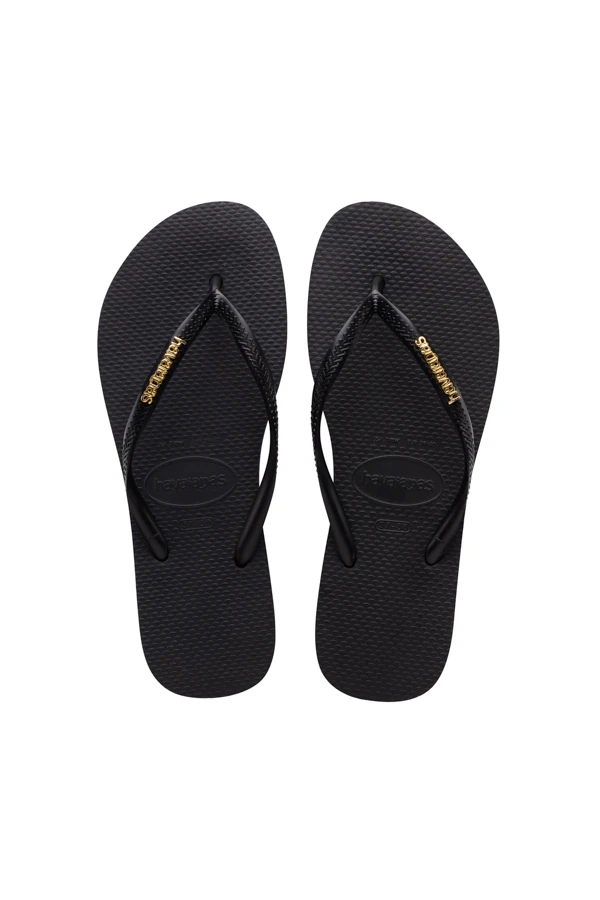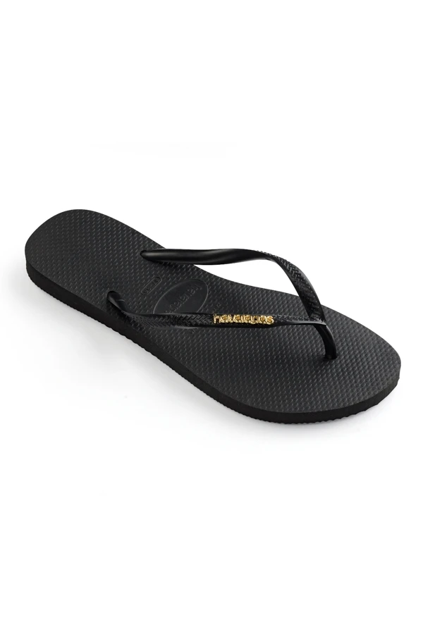 Havaianas Black & Gold Metallic Detail Slim Flip Flops
