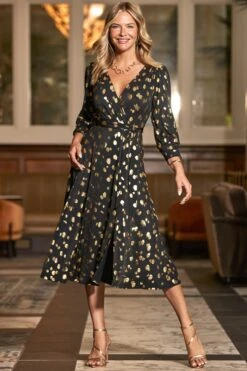 Black & Green Floral Print Sweetheart Neckline Midi Jersey Dress